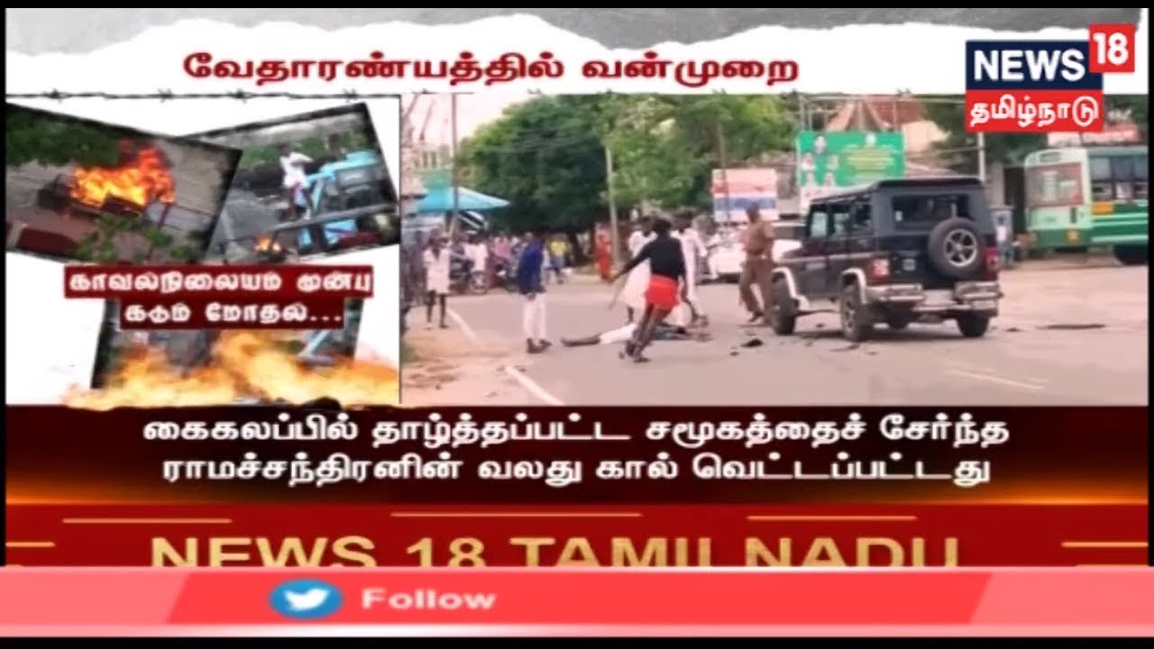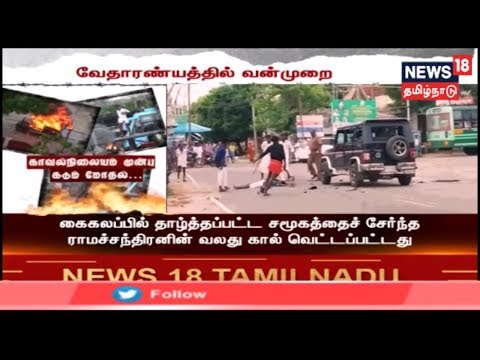நாகை மாவட்டம் வேதாரண்யத்தில் இருதரப்பினரிடையே ஏற்பட்ட மோதலில் வாகனம் தீ வைத்து கொளுத்தப்பட்டது.மேலும் அம்பேத்கர் சிலை உடைக்கப்பட்டதால் ஏற்பட்ட பரபரப்பால் முன்னெச்சரிக்கை நடவடிக்கையாக போலீசார் குவிக்கப்பட்டுள்ளனர். #Vedaranyam