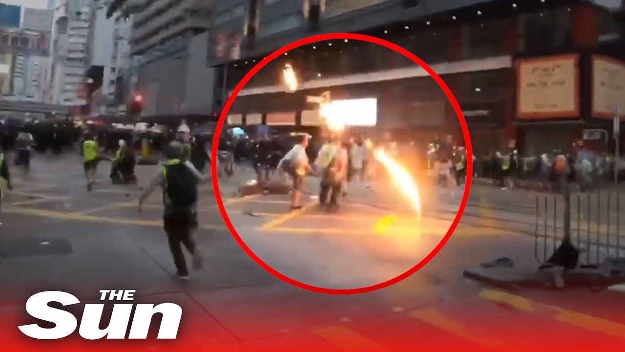 Moment Hong Kong protesters drag off duty cop from car and FIREBOMB him as boy, 14, becomes second person shot by police: