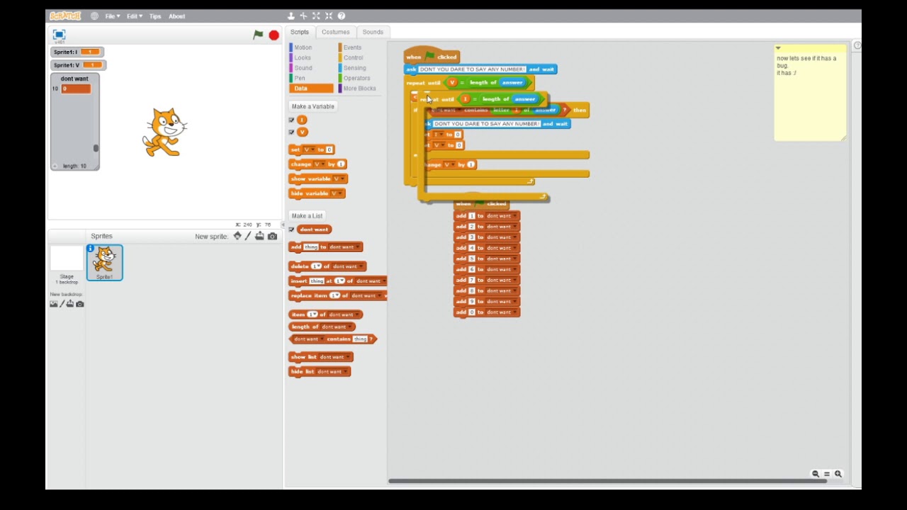 tell me if it helped you (and if it worked in scratch 3, because i dont use scratch 3).Scratch 2, how to check if a answer contains a number you dont want