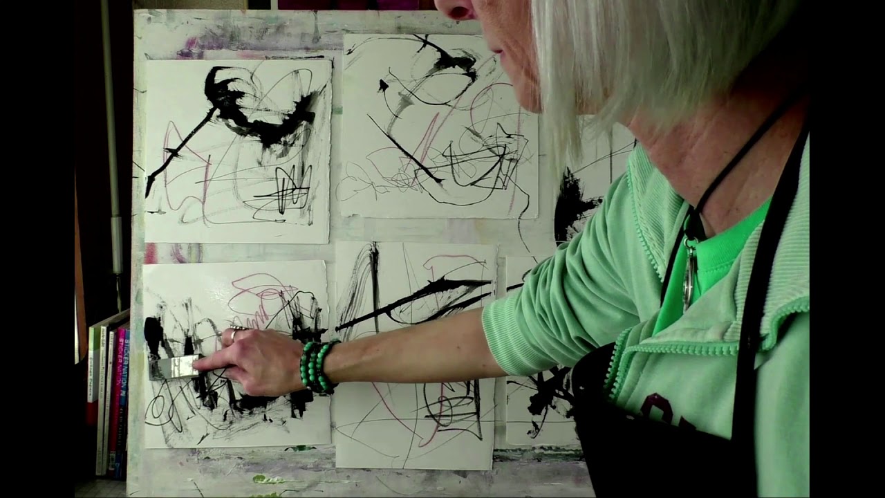 This is one of my warm up exercises. I love this exercise to explore new color combinations, marks and compositions. In this example, I only painted it until the desire for a larger abstract picture took the lead.