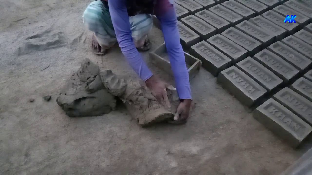 SLOW MOTION MAKING CLAY BRICKS BY OUTMODED SYSTEM.