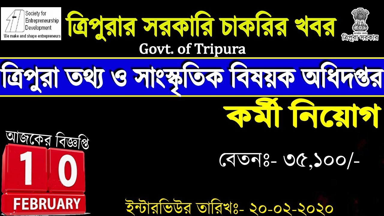 Hello Friends In this Video, #Tripura Jobs in SOFED #Directorate of information and cultural affairs, Govt of Tripura Recruitment 2020 mai jo Vacancy aya hai uske bare mai details a maine is video mai discuss kiya, Agar Directorate of information and cultural affairs, Govt of Tripura mai aya hoya vacancy ka liyea agar apply karna hai tu hume kiya kiya Qualification chaiyea or kase apply karna hai, Mode of Application kiya hai sare details a maine is video mai discuss kiya, So friends agar video ko aycha lage tu like, comments or share karna na bhuliyea ga.