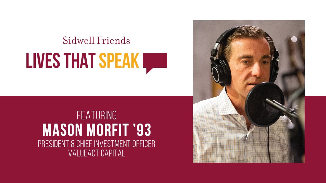 You're listening to “Lives That Speak”, a podcast associated with the Sidwell Friends Magazine. This program highlights the exceptional work of Sidwell Friends School alumni. In our first episode, Bryan Garman, the head of school for Sidwell Friends, sat down with Mason Morfit, an alumnus from the Class of 1993. Mason is the President and Chief Investment Officer of ValueAct Capital, a San Francisco-based investment firm. Since joining ValueAct in 2001, he’s had the distinction of serving on the boards of a variety of public companies, including Microsoft. This fall, Mason spoke about his work, the ethical considerations that frame it, and how Sidwell Friends has shaped his career. Read more about Mason Morfit '93: